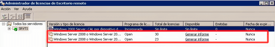 Finalmente, comprobamos que en nuestro servidor solo quedará instalado el paquete de 30 licencias que deseábamos mantener activo.