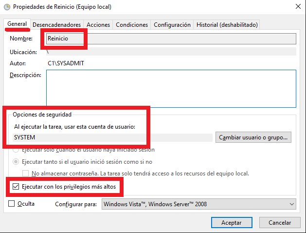 /ru system: Ejecutar la tarea como el usuario SYSTEM.